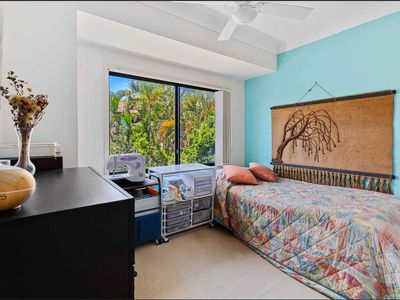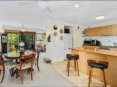 Step inside to open-plan living and dining areas that flow seamlessly to a private balcony, perfect for your morning coffee or relaxing in the evenings. The modern kitchen includes ample bench and storage space, and the lower level opens to a tranquil courtyard surrounded by tropical gardens an inviting spot to unwind or entertain.