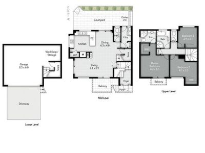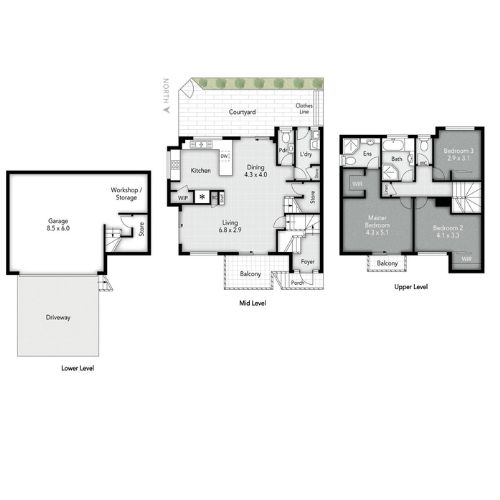 - 186m² total internal space across three levels
